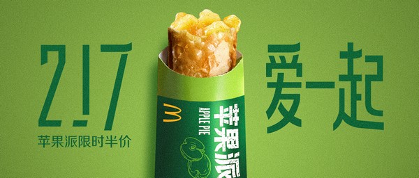 在疫情之下,2月17日,借助“217,爱一起”的寓意,又恰逢麦当劳每周一的会员日,麦当劳的苹果派将以“送上平安,守护春天”的主题限时半价回归一天。