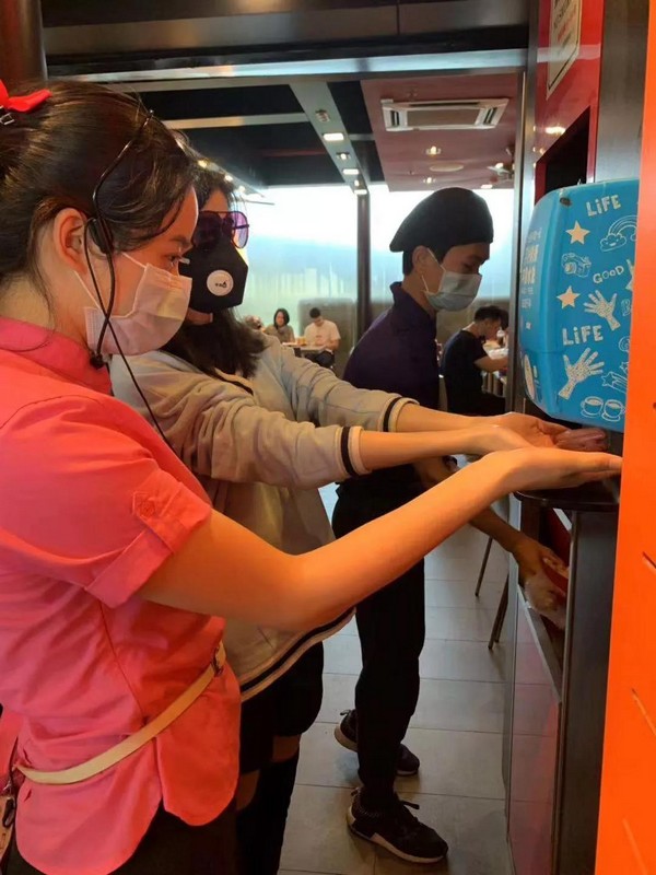 麦当劳在餐厅为顾客提供免洗洗手液