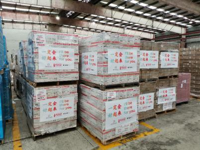 可口可乐系统员工志愿者在海关协助医疗物资装车