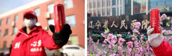 “净水24小时”为当地一线人员急送的特别定制罐饮料产品