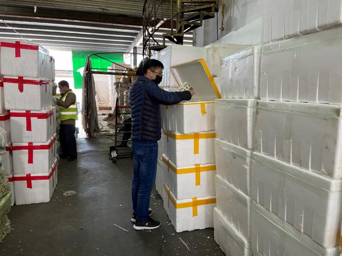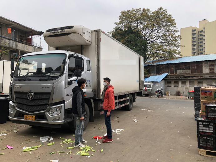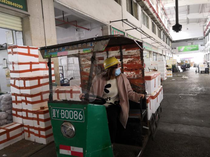 市场的档主、物流车司机、加工工人,全部都带上口罩,看新闻讲跟人讲话要保持距离,但忙起来真顾不了那么多,大家都在“抢货”,这头跟档主商量好,那头货可能被拉走了。“货要拉到自己的加工中心,才算是你的。”因为春节批发市场的档口工人回去一大半了,没人送货,紧张的时候,有女同事干脆自己借一辆三轮车,把谈好的货源直接拉走。