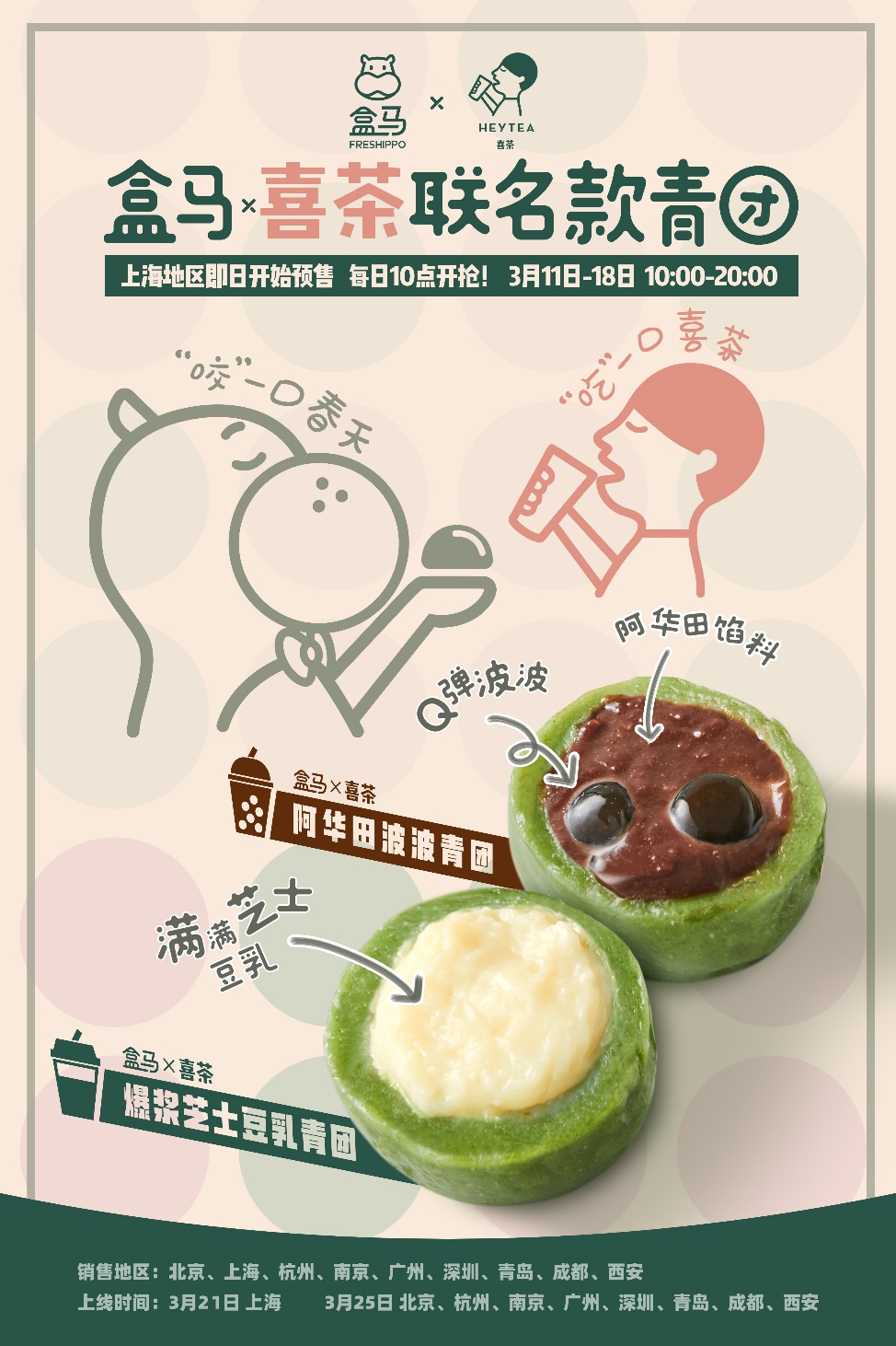 “为了做好这款青团,我把喜茶的所有口味喝了个遍,最多一次点了6杯。”盒马研发小二笑说,“真的很担心变胖。”