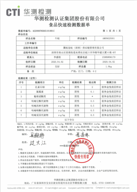 蛙来哒创始人罗清表示:对于食品安全管理,蛙来哒严格要求牛蛙来货供应商,每批来货提供合格的第三方检测报告,经历2019年10月的抽检之后,我们增加了来货后的再一次第三方送检,并保证每批货都送检,以此保证食品安全质量,并将继续升级自我检测标准。