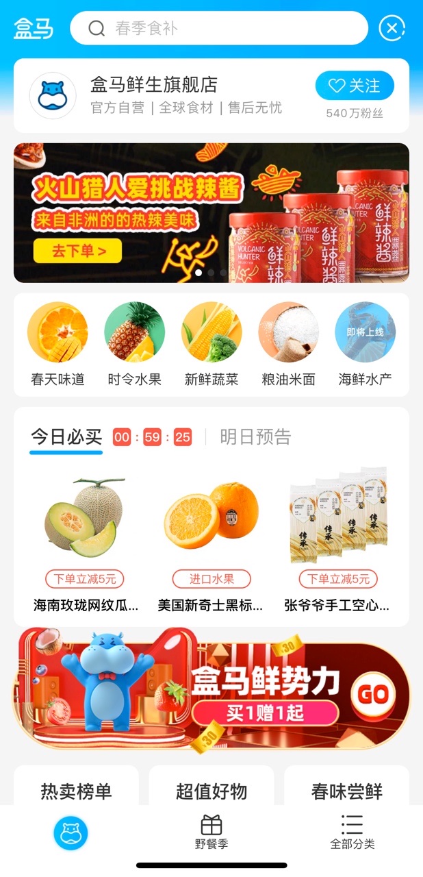 4月21日,盒马鲜生天猫旗舰店正式亮相。这是2020年盒马的重要生态布局之一。淘宝、天猫的7亿消费者,也可以享受到盒马全球时令的生鲜蔬果,以及盒马牌、盒马工坊等头部优质商品,将安全、鲜美的地方农货特产,端上百姓餐桌。