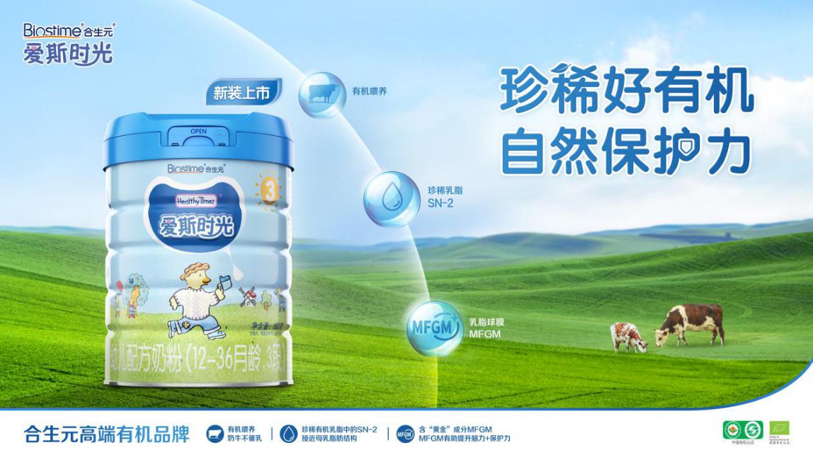 焕新后的合生元爱斯时光有机奶粉,以新概念“珍稀好有机,自然保护力”为核心,采用了全新的高盖包装设计,同时,以3%珍稀有机乳脂,天然SN-2接近珍贵母乳脂肪结构,搭配母乳“黄金”成分MFGM乳脂球膜,促进宝宝脑力及免疫力发育,并添加有机GOS,促进有益菌生长,更贴合宝宝天生需求,给宝宝的成长注入焕新有机保护力。