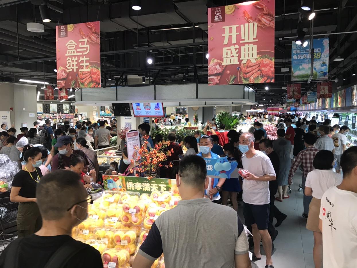 见圳客户端·深圳新闻网2020年7月24日讯 广东最大盒马门店,今天落地深圳龙华区红山6979商业中心。这是盒马在广东的第34家门店,面积超过7000平方米,购物空间和商品种类更加丰富。