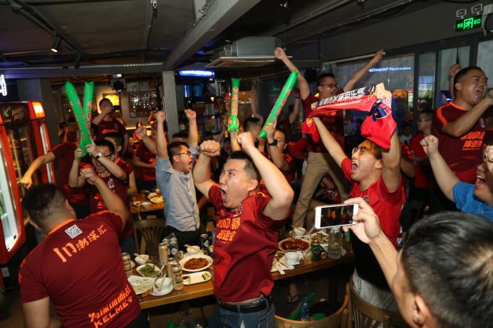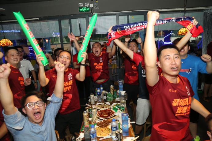 7月26日,青岛啤酒在深圳青岛啤酒球迷餐厅——开场哨餐厅,为深圳队球迷举办欢聚盛宴——观赛派对。现场荣获过国内外大奖的各款青岛啤酒、各地特色美食,琳琅满目。派对上的酒王大赛、瓶盖投票、色盅大赛等游戏为现场注入更多快乐元素,伴随比赛的高潮迭起,现场超燃!