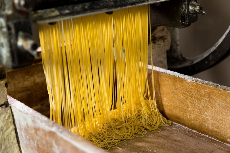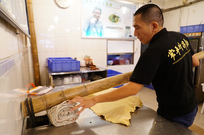 竹升面的精妙在于面味与碱水之间的平衡。碱水决定爽度,面粉决定了硬度和面香。碱水通常分3个度,19.5度、32度和52度,香港竹升面碱水通常用52度的,更为爽口,几乎一咬即断;斌哥用的是19.5度的碱水,表现的是恰到好处的爽。面粉必然要用高精面粉,但市面上的面粉那般多,要选合心水的实属不易,他足足换了20多种,最后才选到合意的。25斤面粉,加上13斤鸭蛋,抽去蛋黄,只用蛋清,这也是增加面条爽度的法子,整个过程不加入一滴水。