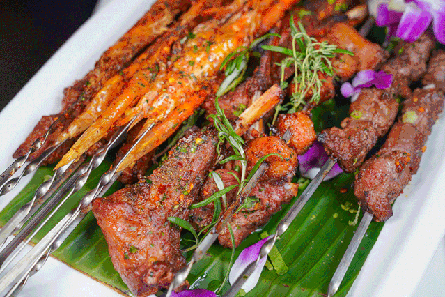 把苏格兰生蚝+波士顿龙虾加入晚餐菜单,慢熬10h的海参鲍鱼每人一份(晚餐),现做香草烤羊扒吮指香,13款海鲜刺身一次满足吃货心,还有现点现做BBQ海陆云集刷过瘾......