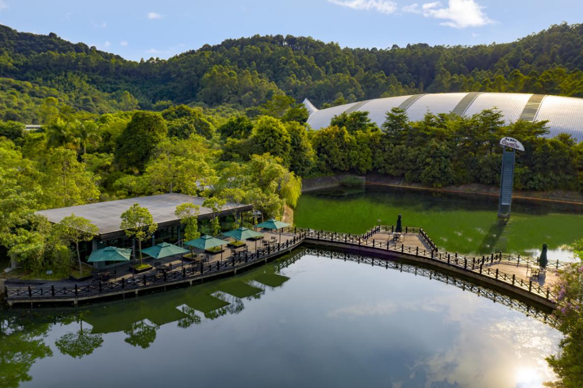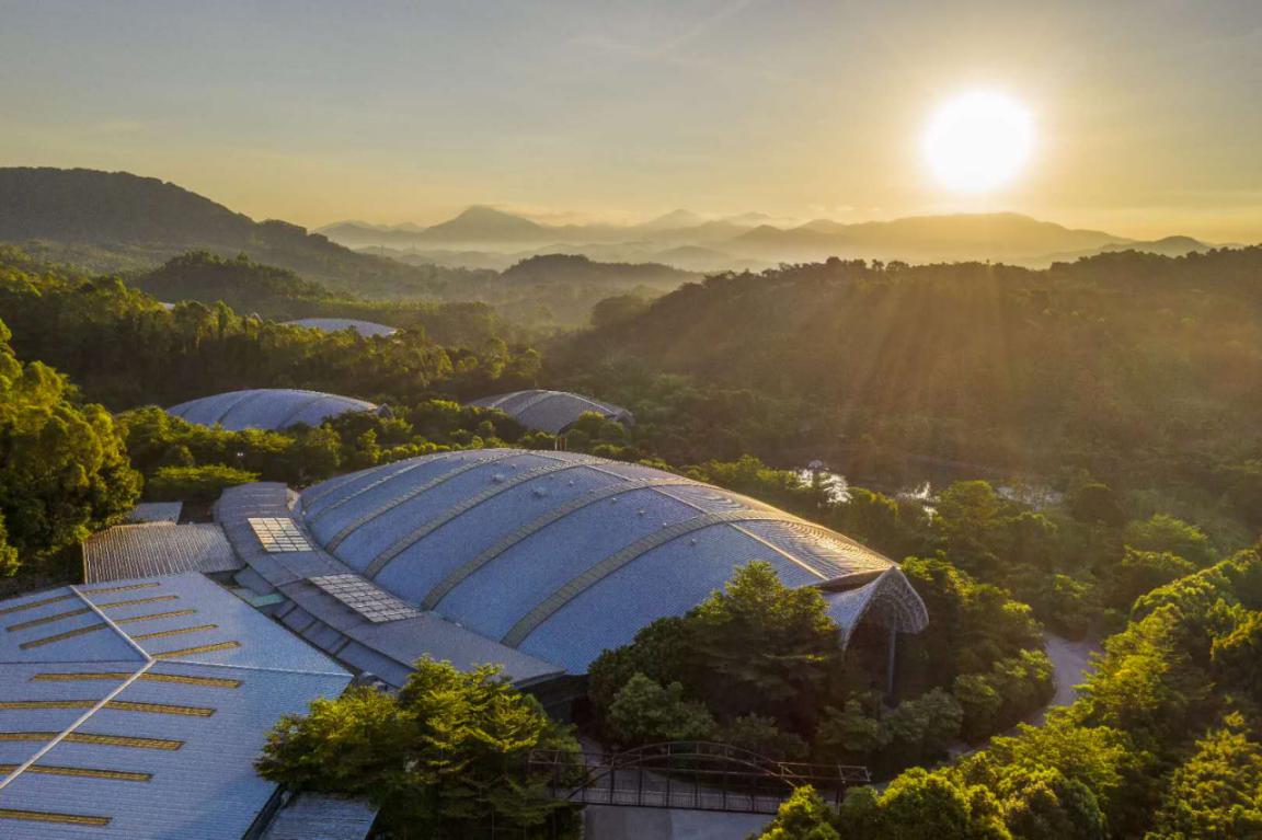 百岁山生产基地坐落在罗浮山脉脚下,整个工厂与周围的自然生态融为一体。进入厂区后,整洁开阔的道路、郁郁葱葱的树木、颇具艺术感的银龟型厂房,都让人不敢相信这里是一个工厂,简直就是旅游景区,也太美了吧!