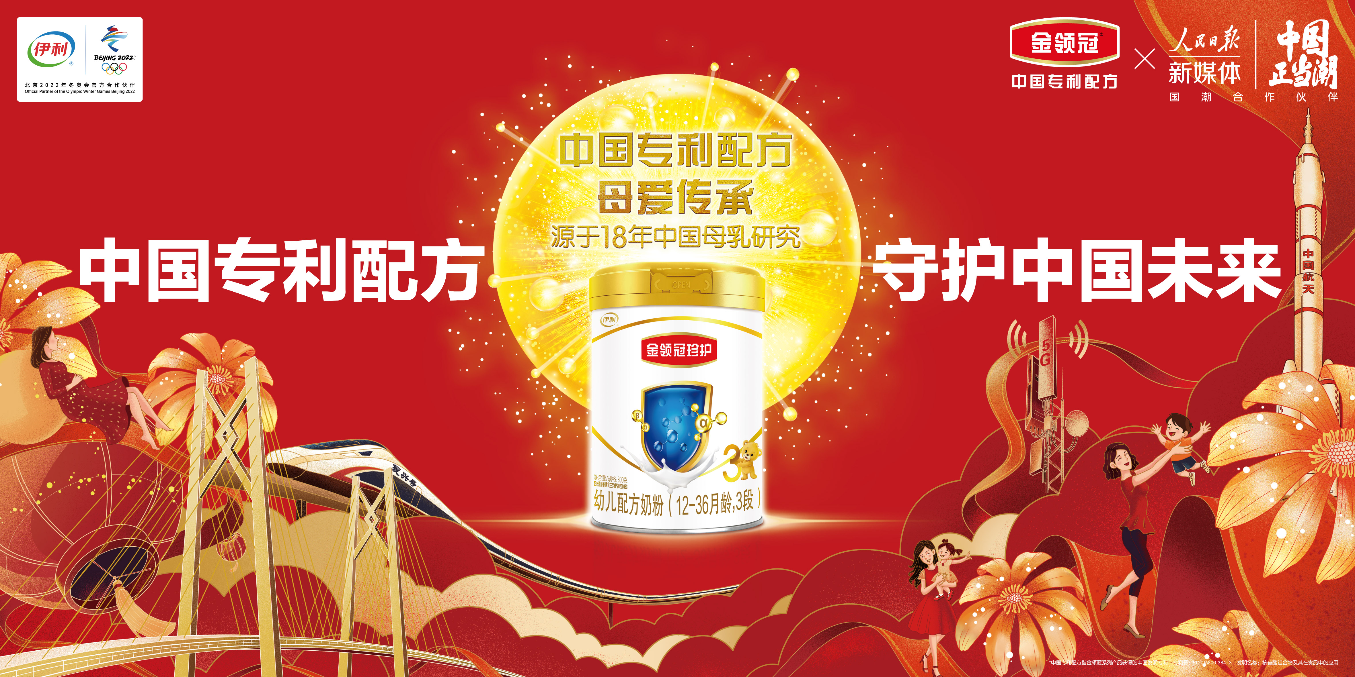 为了研发出更贴合乳源的营养,2003年,伊利率先行业启动了中国母乳研究,累积了千万母乳营养成分数据,打造了属于中国宝宝的金领冠中国专利配方(金领冠系列产品获得的中国发明专利,专利号:ZL201680013841.3)。其中傲世升级的王牌产品“金领冠珍护”,通过对母乳中六大核心营养素结构的系统模拟和科学配比,创新打造了“六维易吸收体系”,营养好吸收之上,还能提升宝宝的认知力和自护力。此外,金领冠珍护更甄选了伊利前1%自有牧场作为其专属奶源地,新鲜生牛乳一次成粉,更大程度地锁住营养活性。