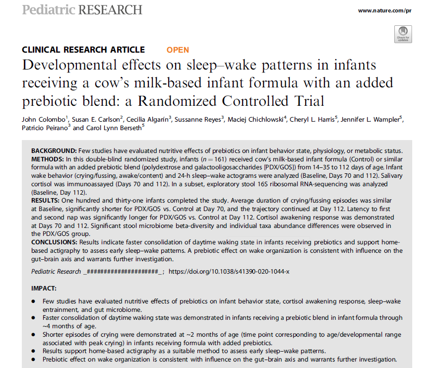 “美赞臣 PDX+GOS益生元组合婴儿睡眠研究”刊发于《儿科研究》