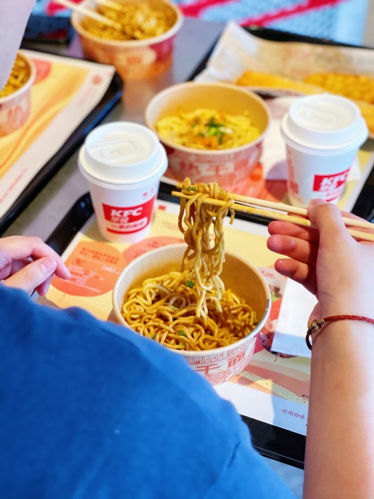 “上周我去武汉出差期间就吃到了肯德基的这款热干面,今天是在深圳上市的第一天,我就想着要来回味一番,这个面口感劲道,浓郁过瘾!”在深圳红山6979餐厅一位食客满足地说到。