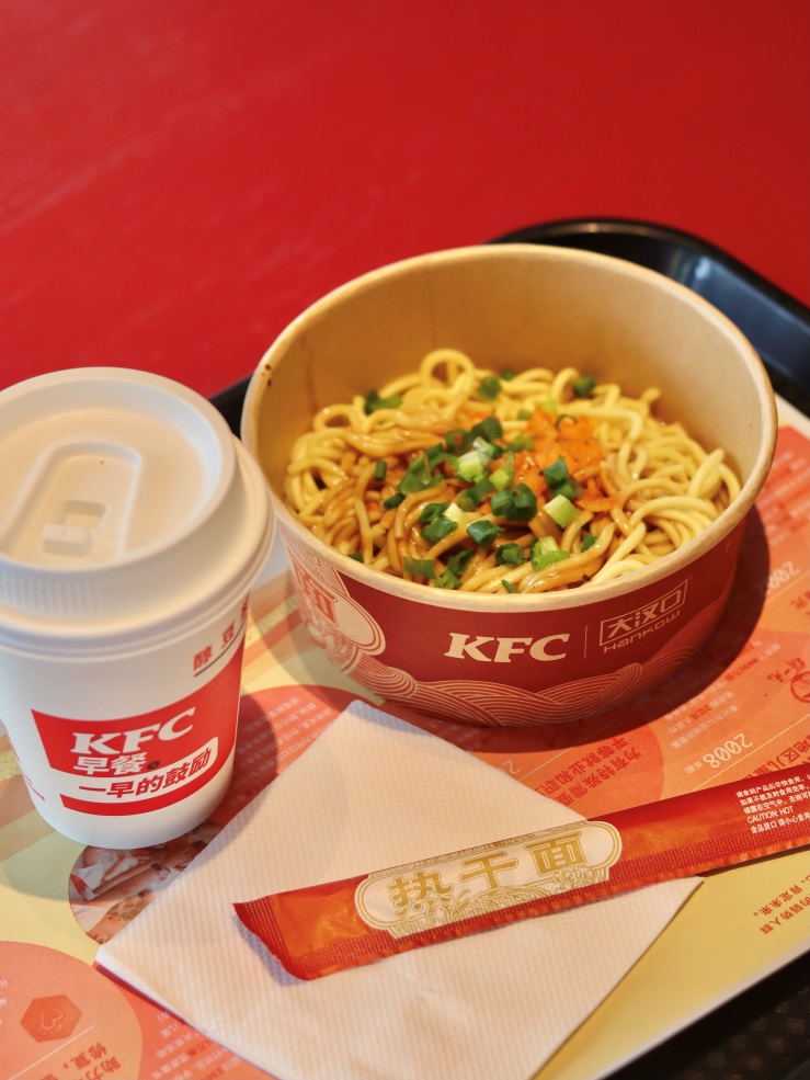据了解,肯德基第一款“面条”类产品——热干面近日在深圳肯德基餐厅早餐时段火热开卖,肯德基用这一碗“地道”的热干面为消费者送上家乡的惊喜,让属于武汉街头的美食走进肯德基,给消费者提供不一样的美食体验。多年来,肯德基一直致力于不断创新和探索,积极融入到各个城市,挖掘每个城市独有的美食风尚,并匠心独运地融入到产品的打造中,缔造出独特的“城市味道”。相信未来,肯德基会秉持创新精神,带给消费者更多新鲜体验。
