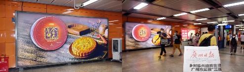在线下,选择上海深圳大客流量的地铁站,唐朝中秋节味海报出街,持续散发节味。让用户沉浸式体验唐朝中秋节节味,吸引网红打卡,大面积曝光,助力品类日爆发。