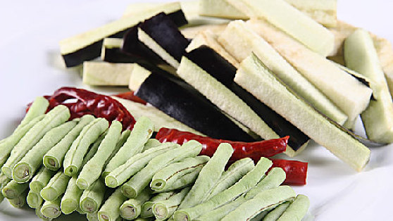 用紫苏、肉松和豆角来搭配茄子是优化组合,口味很好。紫苏兼备食疗和药用两种功效,有补气宽中、发表散寒的作用。
