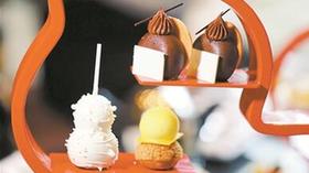 萨赫蛋糕是巧克力下午茶套餐中的一员,此外还有水果提拉米苏、撒西米汉堡、三文鱼三文治、水果挞、泡芙等。