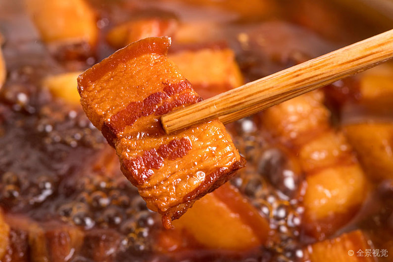 烧鹅外表金黄鲜亮,香气浓郁,皮香脆可口,肉汁中带有韧性,在舌尖上流淌。