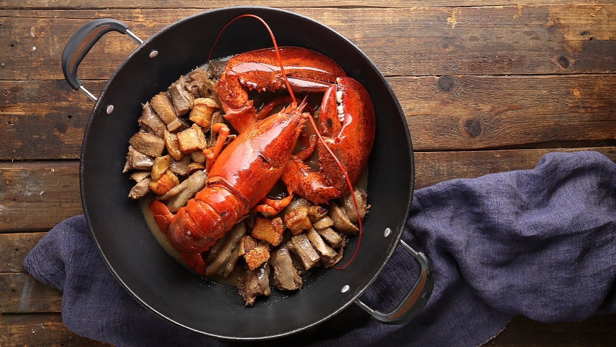 口感丰富(鲜、酸、咸),色彩斑斓(红、黑、白、绿),富有营养的菌菇番茄虾滑煲。