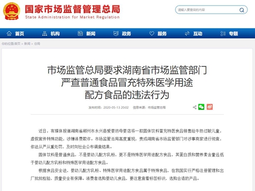 湖南郴州蛋白固体饮料冒充婴幼儿奶粉销售,,出现“大头娃娃”特征。