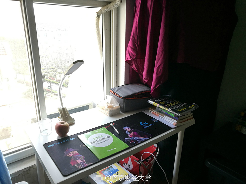 绵绵的草坪、充满设计感的书架、挂着素描画的墙……难以想象这是四个19岁男生的寝室。南京财经大学西苑9幢男生宿舍顶楼602寝室,住着4位“世外高人”—— 涂贵平、柯毅、刘以康和廉镇宇,他们用事实告诉大家,男生宿舍文艺起来,可丝毫不输女生。