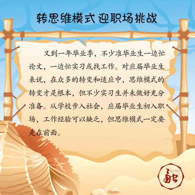 又到一年毕业季,不少准毕业生一边忙论文,一边忙实习或找工作。对应届毕业生来说,在众多的转变和适应中,思维模式的转变才是根本,但不少实习生并未做好充分准备。从学校步入社会,应届毕业生初入职场,工作经验可以缺乏,但思维模式一定要走在前面。