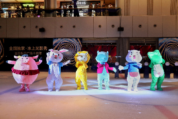 在这次公益行动中,益田旅游商业联动包括深圳益田假日广场在内的全国7大在营商业项目,联手同行,为爱助力!这次行动也同期设计了代表7大商业项目的公益卡通形象,分别是甜甜、NITO、PINO、BOOM、MOKA、OLLI、CATHY,在光影秀结束后,7大IP形象在冰面上悉数亮相,“萌”动全场。