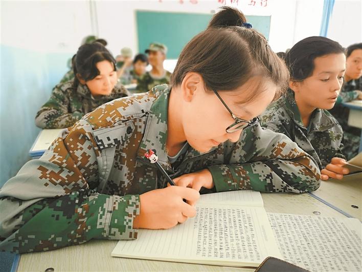 深喀一高学生身穿迷彩服在聚精会神上课。