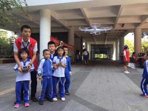 活动现场,每个展品和互动都以看似简单的形式揭示着有趣深奥的科学原理。无人机启动、腾飞、避障、悬停、降落......在全球鹰(深圳)无人机有限公司飞手的操控下无人机自由穿梭在球场上空,引得同学们阵阵欢呼。配合无人机讲堂讲解,同学们在精彩的视觉体验中了解了无人机发展历程,收获了无人机结构、分类、飞行技能等知识,为同学们打开正确操控无人机的大门。