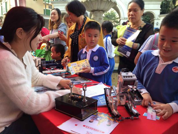 市民们在体验EV3编程机器人与电磁感应千人震项目