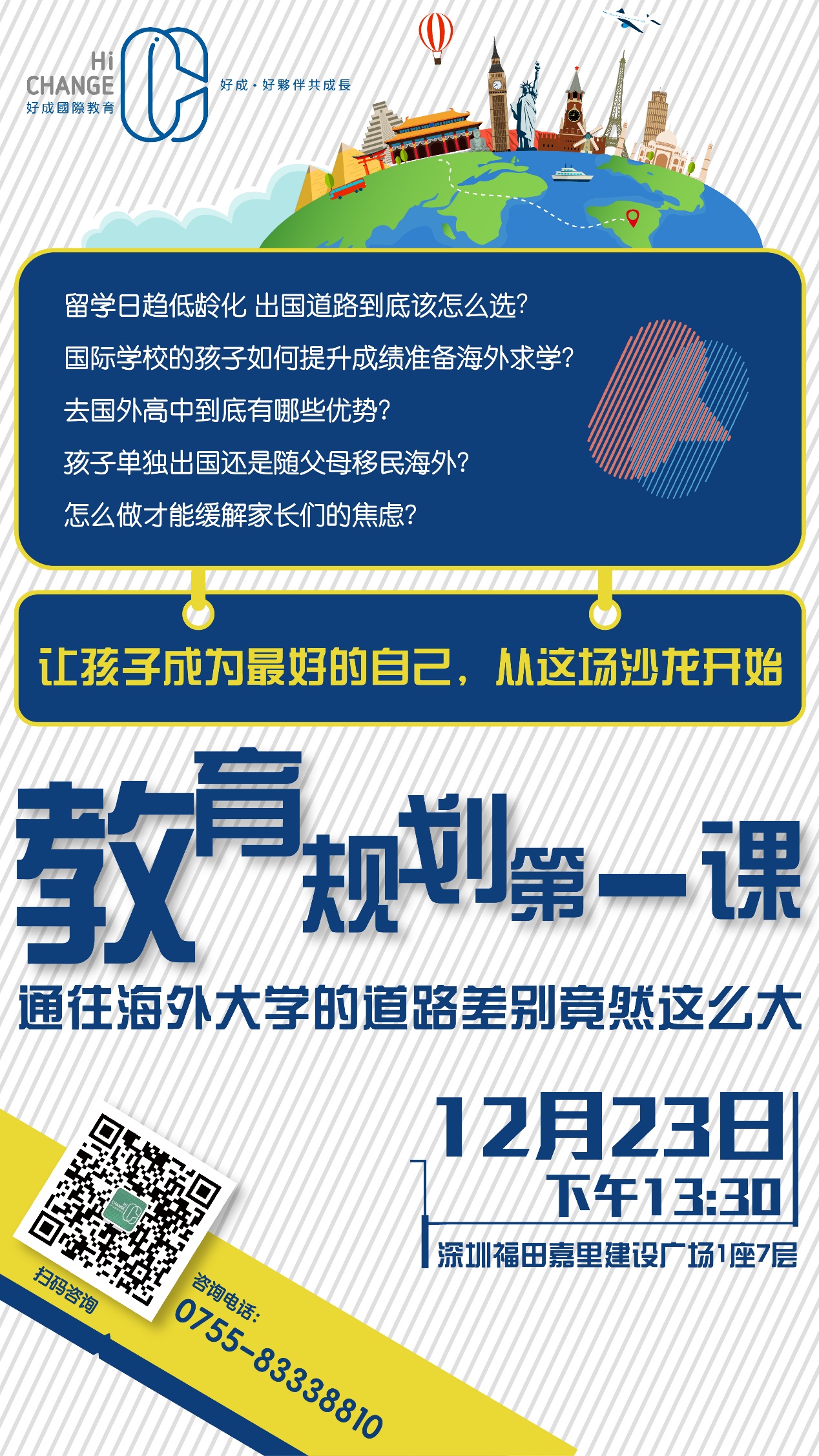 本周日,一场专业的深度分享会将在深圳福田嘉里建设广场1座7层举行。资深留学导师、美国顶尖名校申请金牌规划师邵静文老师,国际课程体系资深老师王一老师将以 “教育规划第一课:通往海外大学的道路差别竟然这么大” 为主题,直面痛点,与家长孩子面对面交流,为你解开出国留学的重重困扰。