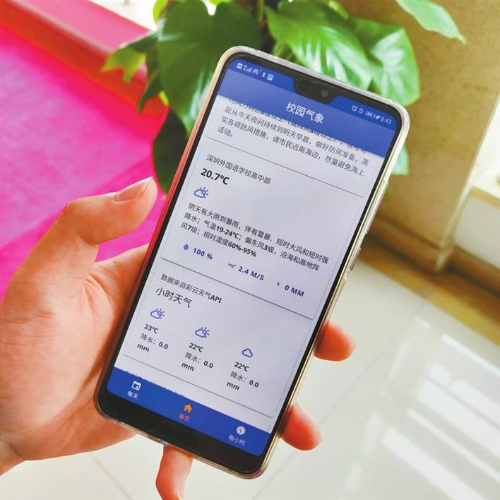 深外气象天文台现任台长马飞扬介绍,现在上线的“笑颜气象”APP针对深外独特的气候,能够实现精细化监测和预报服务,并给师生提供穿衣、运动、晾晒、防护蚊虫等不同指数的建议,实现了7*24H的自动更新。“未来,‘笑颜气象’还将推出网页版、微信版等,并将在深外试点测试结束后,在联盟帮助下逐步向深圳更多校区、学校推广,成熟后可继续向全国乃至全球各类校园、园区推广。”韩雨杉说。(记者 方胜)