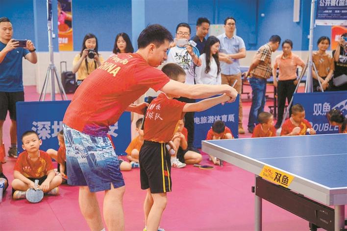 晶报5月14日讯 5月13日下午,中国国家乒乓球队运动员方博、王艺迪出席了“中国乒乓球队进校园公益活动”。两位球星与深圳市宝安区孝德学校的同学们开展了有趣的乒乓球游戏,在半小时的互动中,同学们实现了与球星的零距离交流学习,体验了乒乓球的多种玩法。
