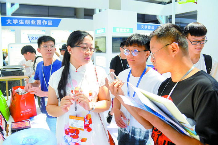 今年,深职院精心组织了来自艺术设计学院、数字创意与动画学院、传播工程学院的22个文化创意项目参展文博会,均为师生最新的原创作品,涉及文创产品设计、文化创意展示、智能包装、服装纺织、首饰设计、虚拟互动APP等多个类别。学校党委书记陈秋明表示,参展项目既传承了优秀的中国传统文化,又加入了时尚的科技创意,还综合考虑到文创设计转化成产品的产业链开发全过程,充分展现了学校产教融合的丰硕成果。(记者 程玉珂)