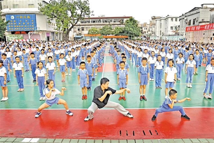 宝安日报05月29日讯 昨日,在“六一”国际儿童节来临之际,区公共文化服务中心组织宝安市级非遗项目“华林螳螂拳”走进蚝业小学,在庆祝“六一”的同时,也让孩子们接受了传统文化的洗礼。