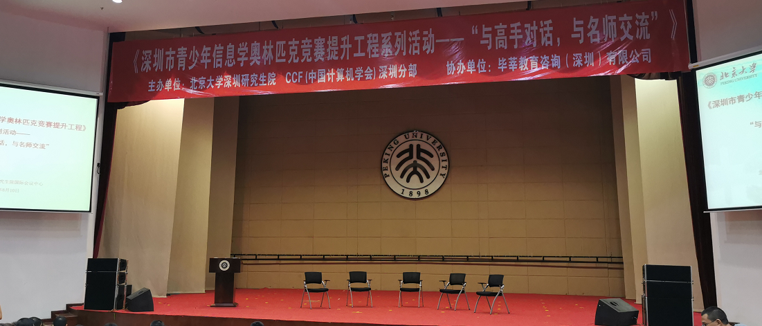 见圳客户端、深圳新闻网8月16日讯 近日,深圳市青少年信息学奥林匹克竞赛提升工程系列活动——“与高手对话,与名师交流”在北京大学深圳研究生院国际会议报告厅举行。本次活动由北京大学深圳研究生院、 CCF(中国计算机学会)深圳分部联合主办,毕莘教育咨询(深圳)有限公司协办。