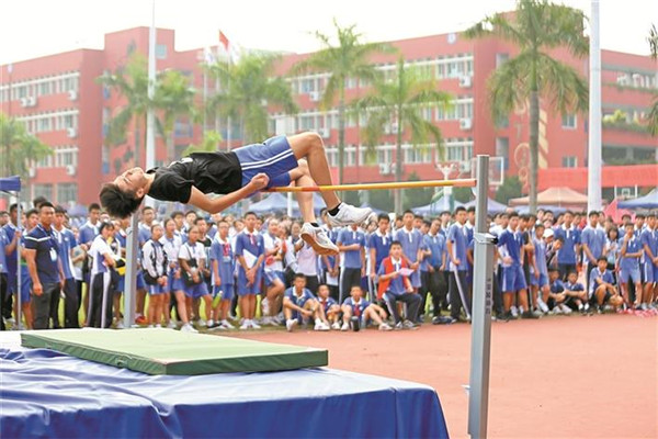 ▲沙井中学学生在第十四届体育艺术节田径运动会跳高比赛中表现精彩。