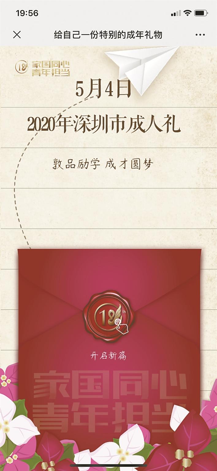 5月4日,由深圳市文明办、深圳市教育局、共青团深圳市委员会主办,深圳报业集团深圳晚报社承办的“2020深圳市成人礼”线上宣誓典礼举行,吸引了深圳众多即将成年的学子积极参加。对这次特殊的成人宣誓典礼,学子们纷纷表示很特别,很暖心。