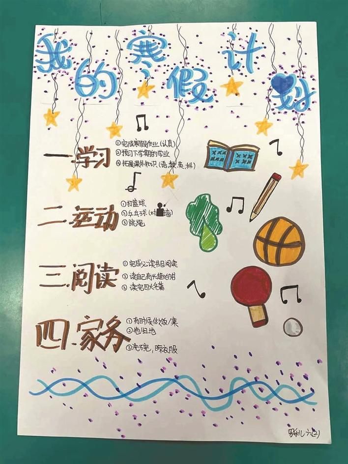 滨河小学精心设计了《宅学手册》。“宅学攻略”包括合理制定寒假计划,鼓励孩子争当家庭小帮手,坚持每天运动,培养兴趣爱好,去博物馆、美术馆或科技馆参观增长见识,过一个有意义的寒假。