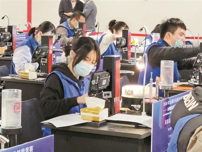 博伦职业技术学校学生参加珠宝玉石检测技能大赛。