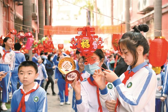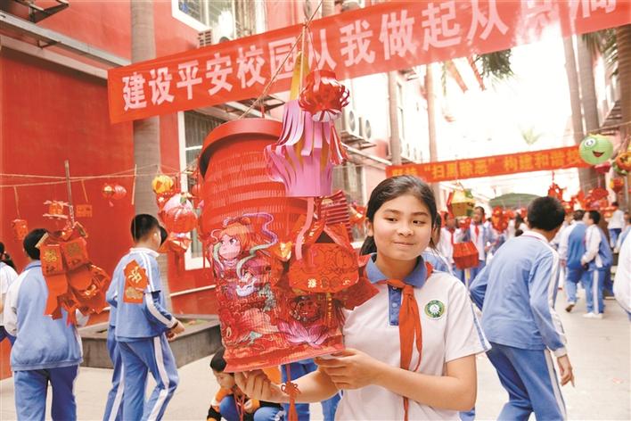 南方教育时报2021年2月6日讯(记者 刘丽 安康 /文 学校供图) 正月十五元宵节,深圳不少学校都举行了猜灯谜活动。灯谜内容知识面广,涉及儒学经典、文学、历史、自然科学诸多方面,融知识性、趣味性、参与性于一体。活动不仅让广大师生充分体验中华民族的传统习俗,还使师生们通过灯谜活动比拼了智慧,为牛年开学营造了良好的学习氛围。图为龙高集团龙城小学、春蕾学校和福安学校的闹元宵活动。