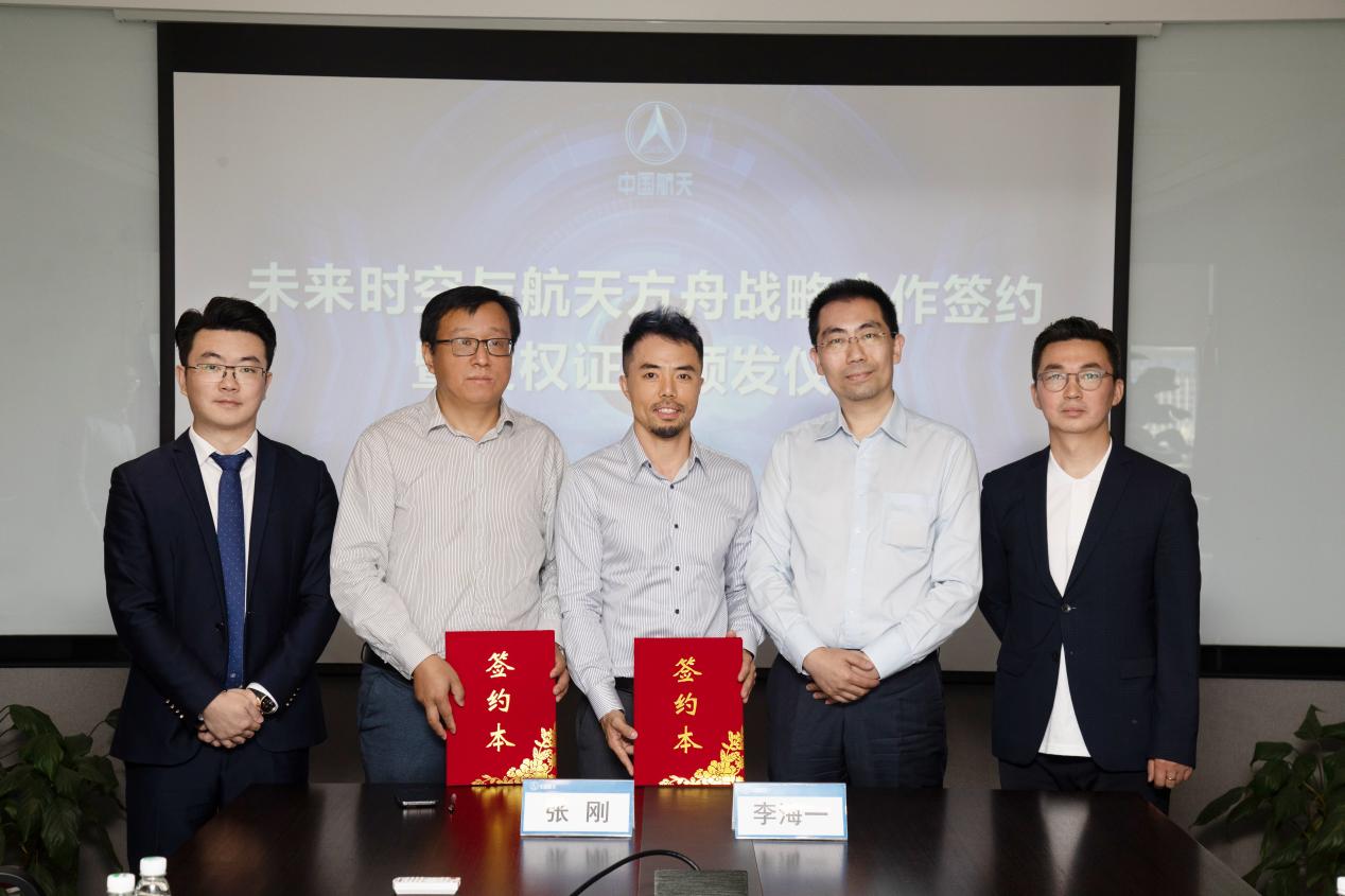 北京航天方舟空间技术有限公司董事长张刚,未来时空(深圳)文化产业有限公司创始人兼董事长李海一、北京航天方舟空间技术有限公司总经理孙愻,未来时空(深圳)文化产业有限公司联合创始人陈欣泉、杨宇环等出席本次仪式。