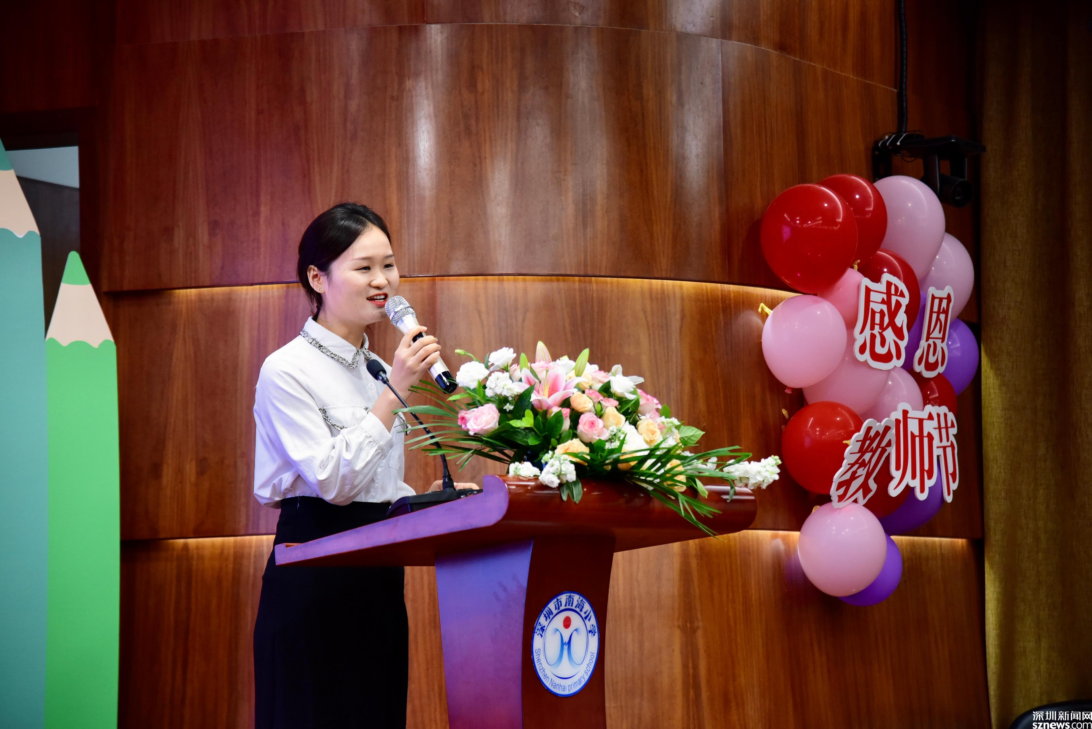 入围南山区2021“年度教师”决赛的李艳老师分享经验。曹园芳/摄