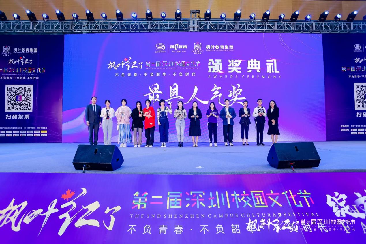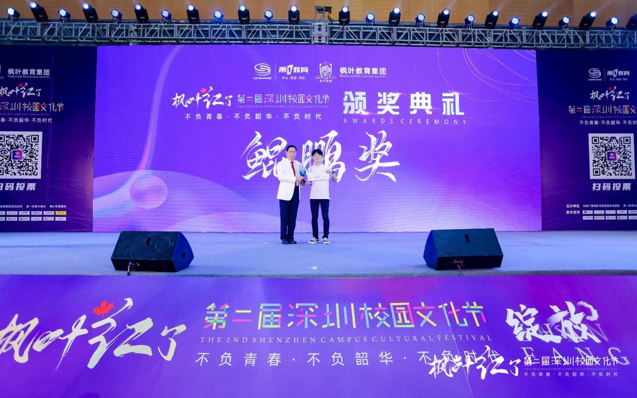 另据了解,本届活动不以竞赛为目的,不设专业评委,不设专业分数,不设奖牌等级,而是以鼓励学生全面发展、校园文化交流为初心,由观众们自发投票评选出魅力社团奖、优秀指导老师奖、鲲鹏奖、绽放奖、最具人气奖。记者从现场了解到,获得本届魅力社团奖的学校有10所,分别是:深圳市南山区文理实验学校(集团)《模拟联合国社》、南山区前海学校《棒球队》、深圳实验学校高中部《回声合唱团》、深圳高级中学(集团)中心校区《深高学生戏剧团》、深圳市枫叶学校《英语戏剧社》、深圳市龙华中学《跆拳道空手》、深圳市蛇口育才教育(集团)育才中学 《404乐队》、深圳市育新学校 《The best军乐团》、南方科技大学附属中学《机器人队》、深圳市艺术高中《钟吕交响管乐团》;获得本届校园文化节鲲鹏奖(唯一)的学校是:南方科技大学附属中学;获得本届校园文化节绽放奖的是9所学校,分别是:深圳市第一职业技术学校、深圳中学、深圳市艺术高中、深圳市宝安中学(集团)、深圳市第三职业技术学校、深圳市枫叶学校、深圳市龙岗区龙城高级中学、宝安区为明双语实验学校、深圳市蛇口育才教育(集团)育才中学;获得现场最具人气奖的学校有10所,分别是:深圳市第一职业技术学校、深圳市福田区华强职业技术学校、深圳市第三职业技术学校、深圳大学附属中学、红岭中学(集团)石厦初中部、龙岗区兰著学校、万科梅沙书院、深圳市南山区文理实验学校(集团)、笋岗中学、宝安中学(集团);最后同时获得本届校园文化节优秀指导老师奖的学校分别来自:南方科技大学附属中学、深圳市第一职业技术学校、深圳中学、深圳市蛇口育才教育(集团)育才中学、深圳市宝安中学(集团)、深圳市第三职业技术学校、深圳市艺术高中、深圳市枫叶学校、宝安区为明双语实验学校、深圳市龙岗区龙城高级中学。