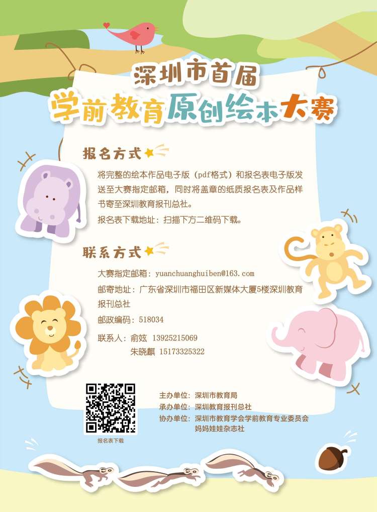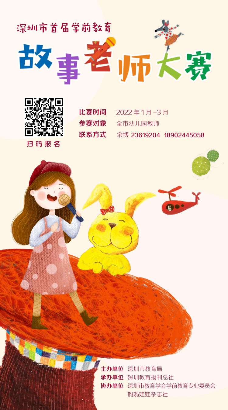 读特客户端·深圳新闻网2022年1月12日讯 (记者 陈彬 通讯员 程玉珂)由深圳市教育局主办,深圳教育报刊总社承办,深圳市教育学会学前教育专业委员会、妈妈娃娃杂志社协办的深圳市首届学前教育“故事老师”大赛暨原创绘本大赛将于2022年1-3月举办。