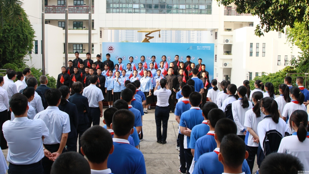 11月1日上午,深圳市光明区公明中学组织开展了本年度读书月启动仪式,全校师生参加了活动,活动由初二(5)班谭欣怡同学主持。