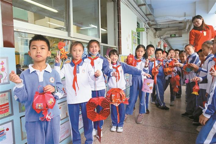 昨日,宝安区滨海小学的校园里红红的灯笼高高挂,透着浓浓的年味。