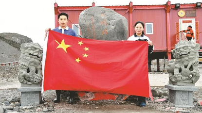 罗湖一名教师和儿子登上南极大陆,两人在冰天雪地中穿着深圳校服自豪地秀国旗的照片惊艳了朋友圈。