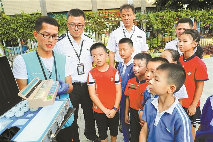 在宝安区滨海小学,该校三年级6个班约300名学生齐聚这里,参加了一场别开生面的校园食品安全游园会活动。