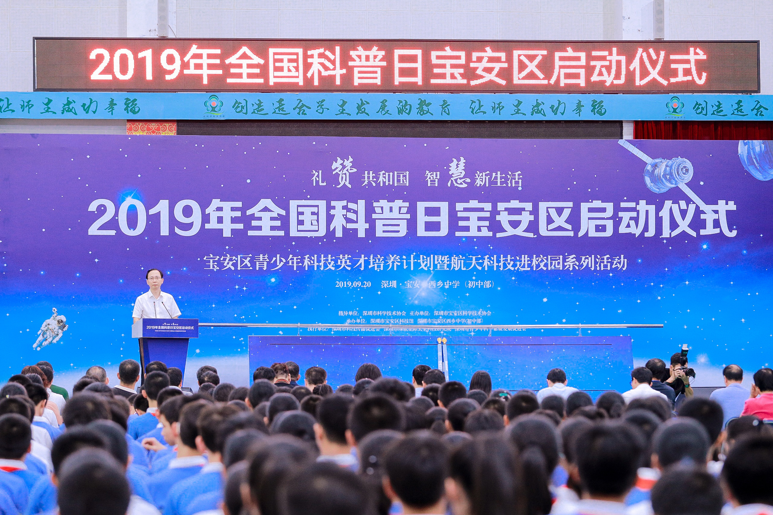 全国科普日宝安区启动仪式在西乡中学举行,活动由宝安区科协主办、区科技馆和西乡中学初中部承办。